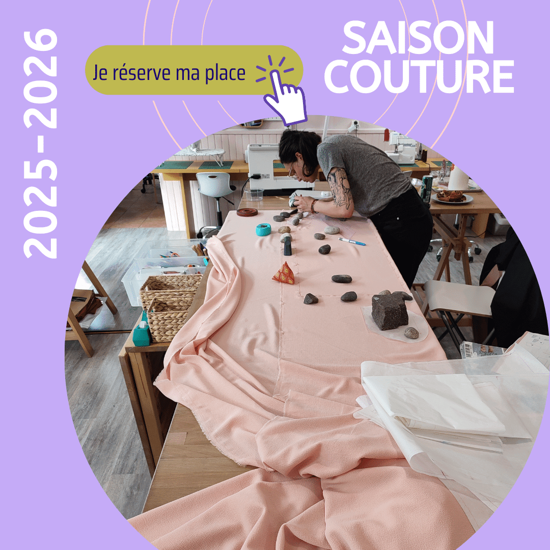 Dans nos ateliers de couture réalisation, nous nous concentrons sur un ou plusieurs projets : la fabrication d’ouvrages définie au préalable afin d’aborder les techniques de base d’assemblage.